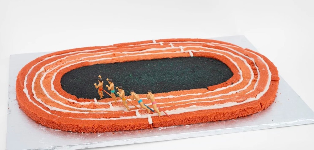 As part of Olympia Gallery’s exhibition Cake, I am presenting an edible sculpture of a race track.